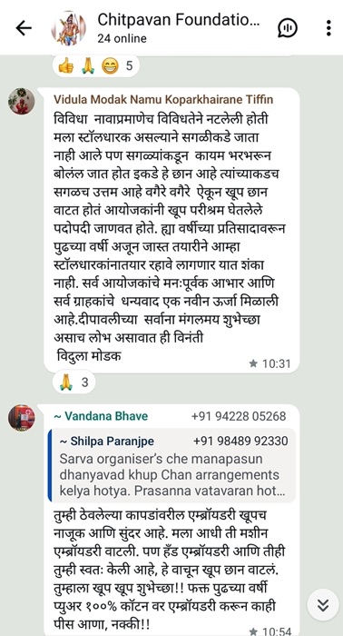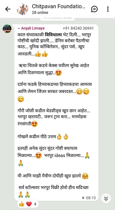 त्याप्रमाणे ग्राहकांनीही एकाच छताखाली अतिशय दर्जेदार गुणवत्ता असलेल्या वस्तू व सेवा रास्त किंमतीत उपलब्ध करून दिल्याबद्दल चित्पावन फौंडेशन, नवी मुंबई ला मनापासून धन्यवाद दिले.