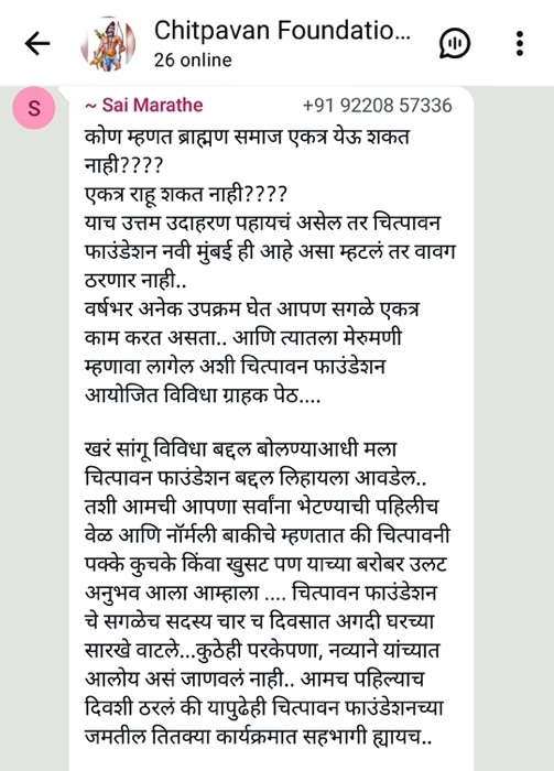 त्या दृष्टीने चित्पावन फौंडेशन, नवी मुंबई चे कोअर कमिटी चे सभासद नवनवीन कल्पना लढवत असतात आणि त्यांचा पाठपुरावाही करत असतात.