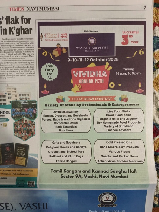 त्याप्रमाणे चित्पावन फौंडेशन, नवी मुंबईने ह्या वर्षी म्हणजे २०२५ च्या ९ ते १२ ऑक्टोबर रोजी "तामिळ संगम हॉल", आणि "कन्नड संघ हॉल", वाशी, नवी मुंबई येथे सकाळी १० ते रात्री ९ अशा वेळेत विविधा - ग्राहक पेठेचे आयोजन करण्यात आले होते. ग्राहकांच्या सोयीकरता दोन्ही हॉल मध्ये तळमजल्यावर स्टॉल उभारण्यात आले होते. दोन्ही हॉल च्या मधील भागात फूड स्टॉल ला जागा देण्यात आली होती.